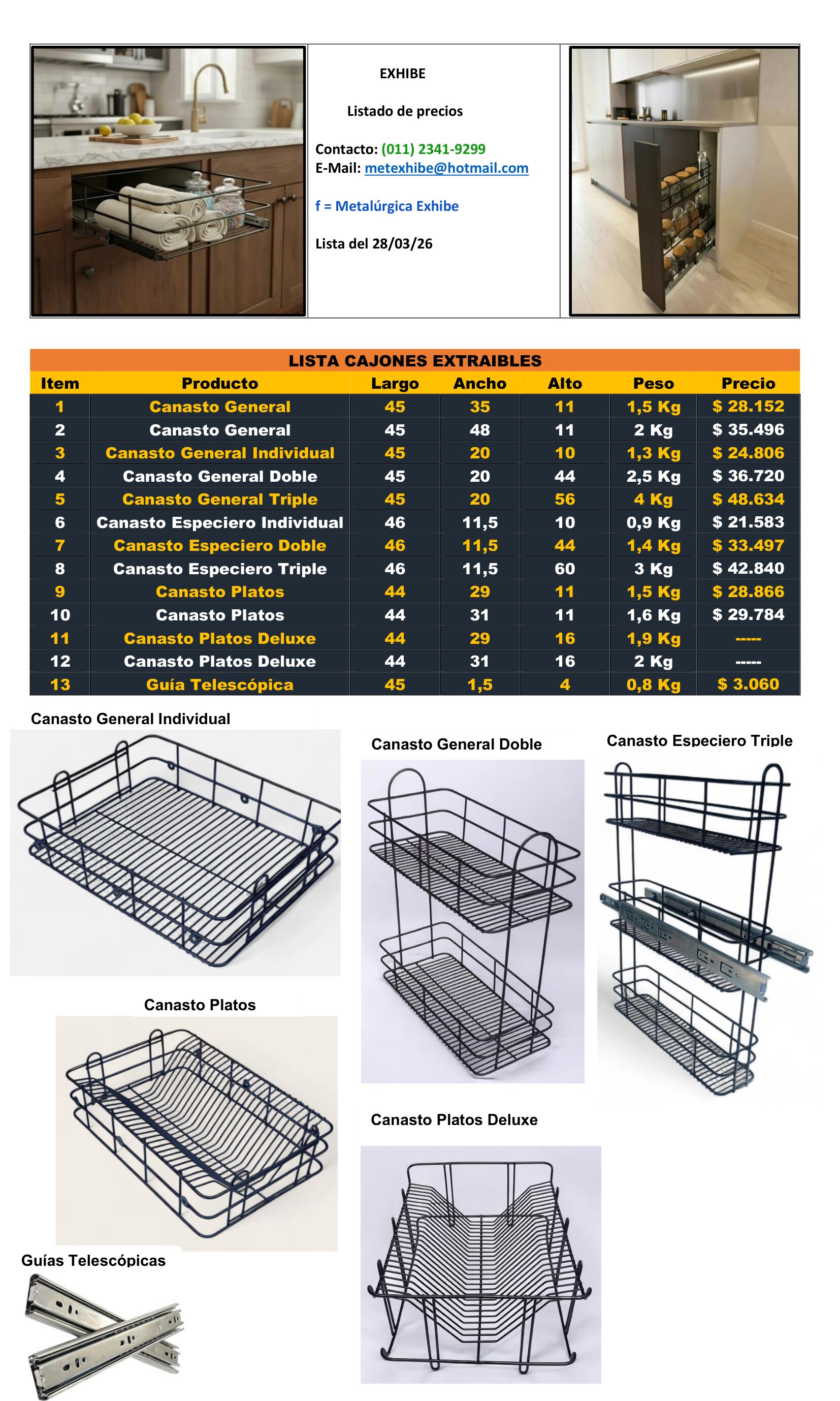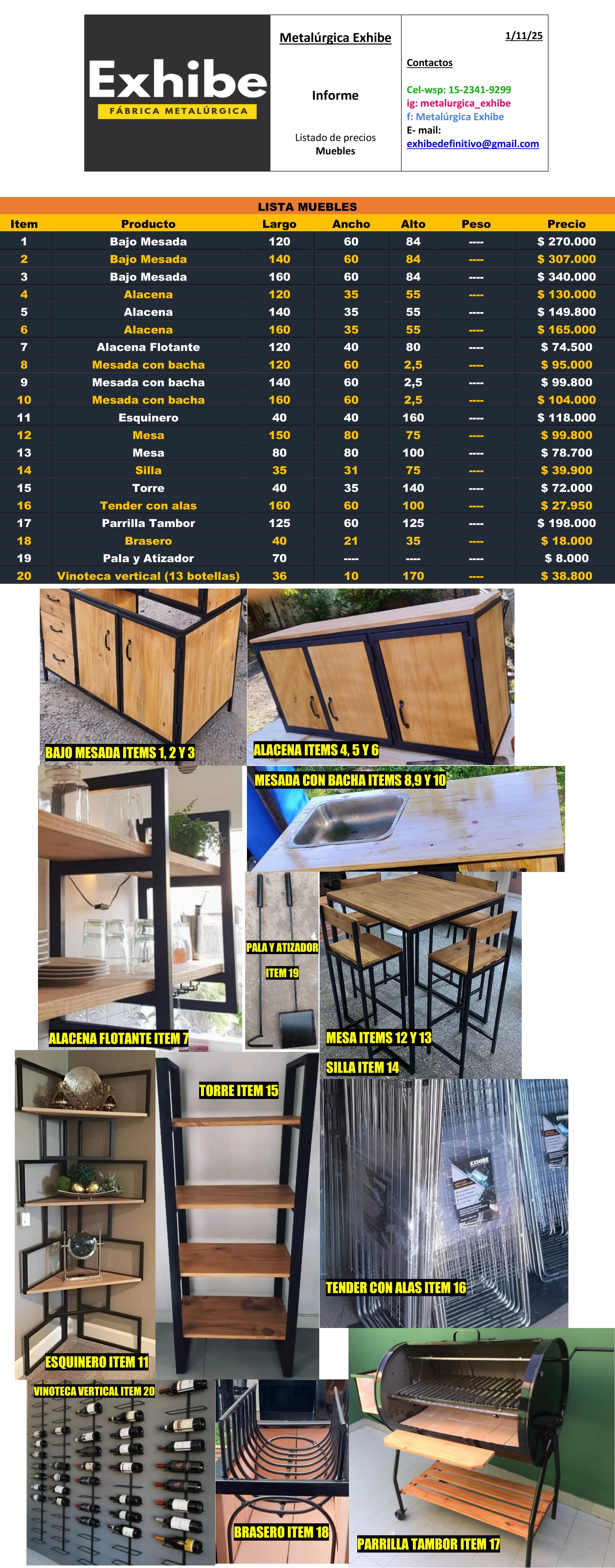 10Vinoteca vertical62354 botellas1 Kg$27.000 11Parrilla Tambor12560125--$218.000 12Pala y Atizazdor--------$9.000 13Brasero402135--$19.800Canastos Extraibles